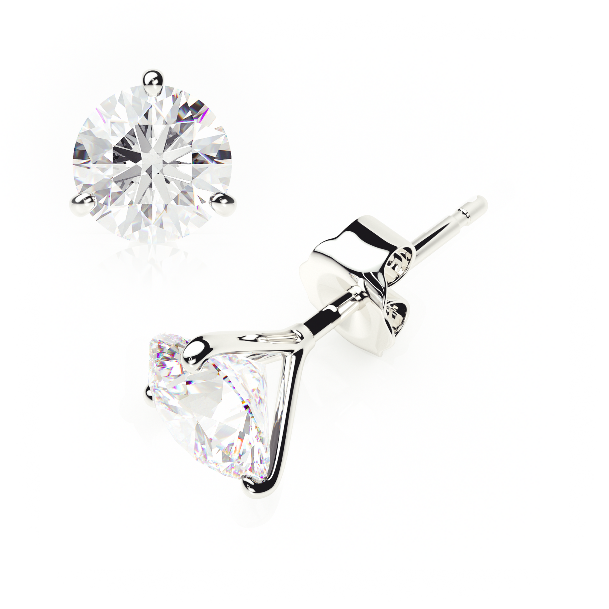 3 Claw Butterfly - Round Shape - 2 ct Diamond Stud Earrings