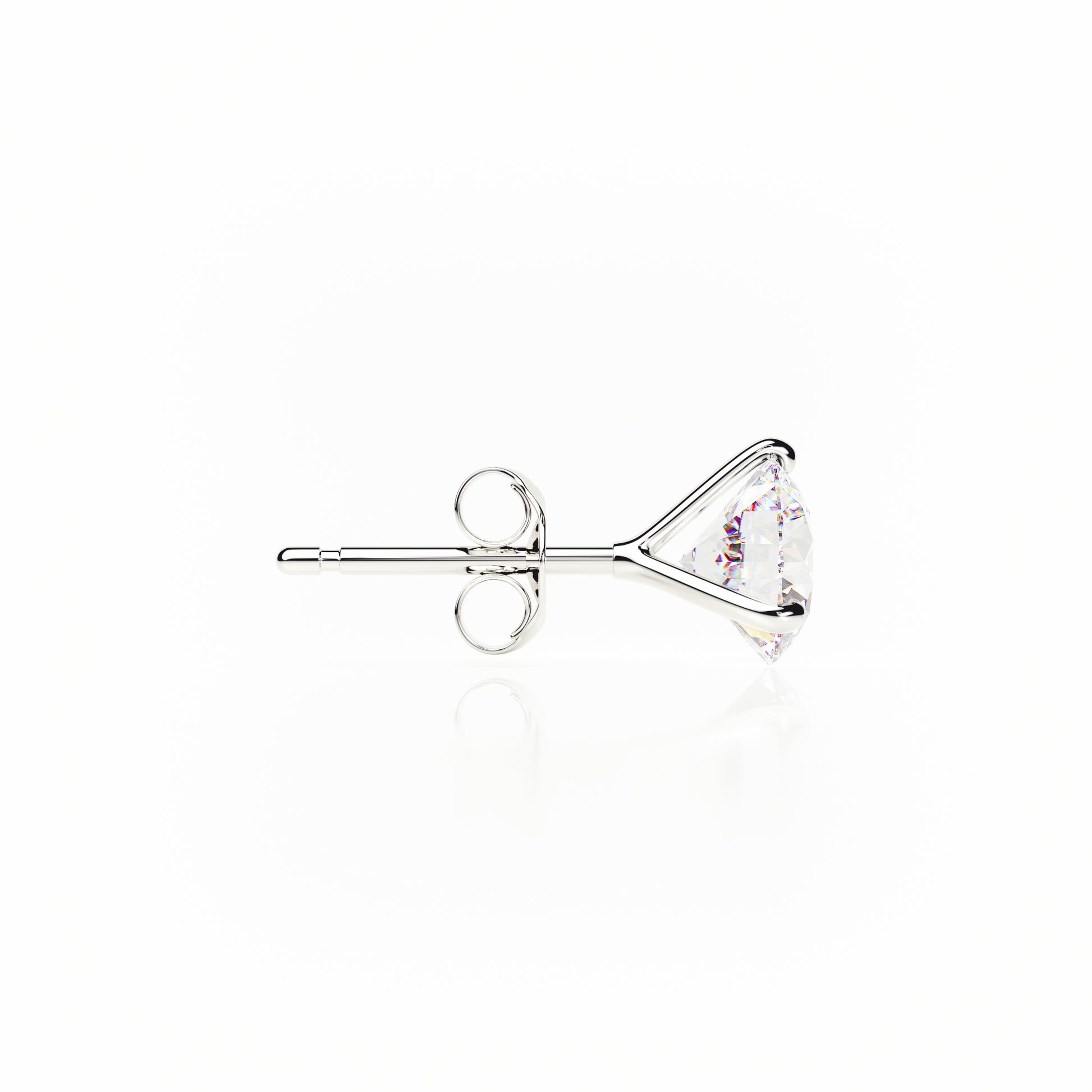 Introducing - a pair of three-claw butterfly diamond stud earrings designed to embody lightness, grace, and refined charm. Each diamond is delicately held in a three-claw setting that unveils its full brilliance, allowing light to dance freely across every facet. The butterfly back enhances comfort and security, while maintaining a graceful silhouette that sits effortlessly on the ear.