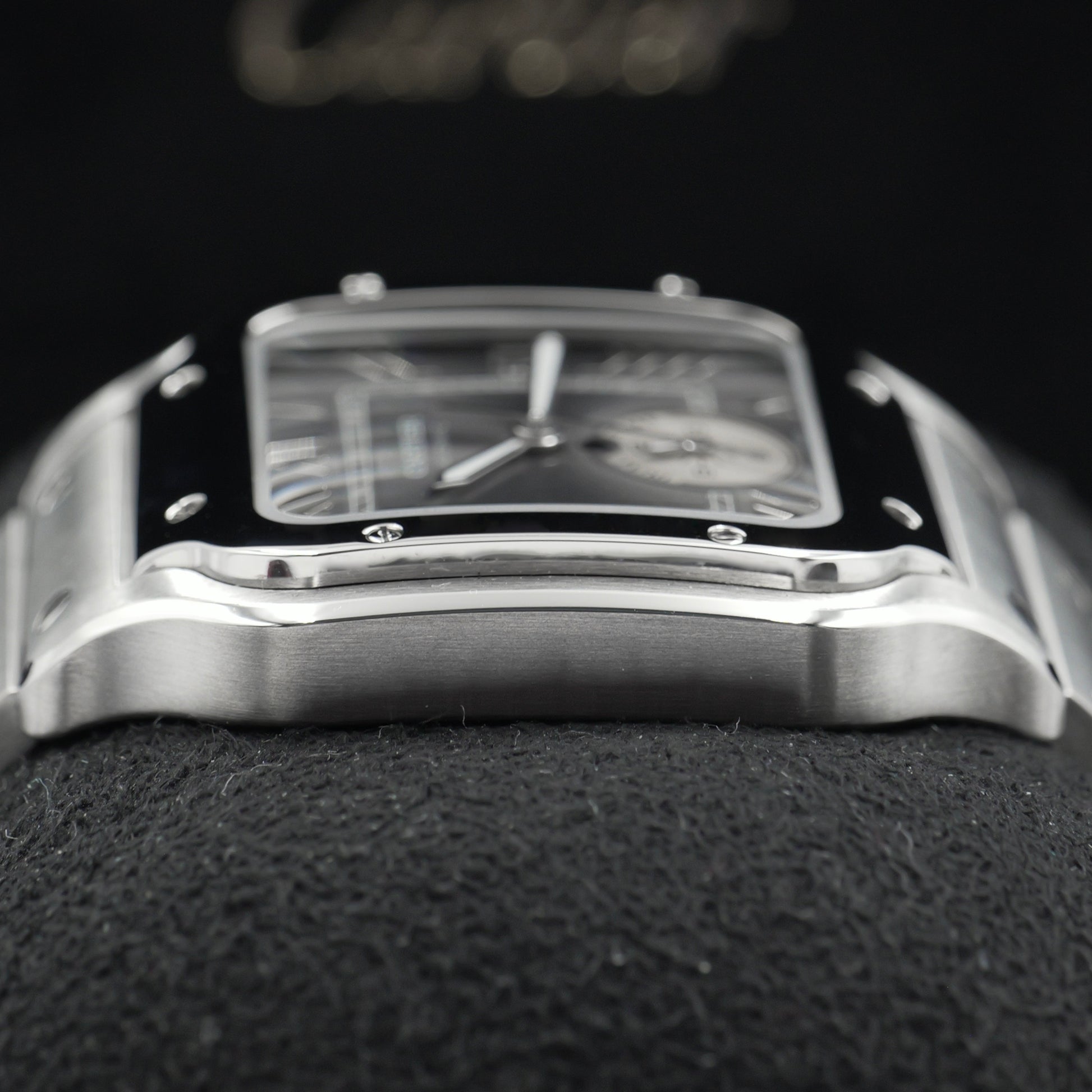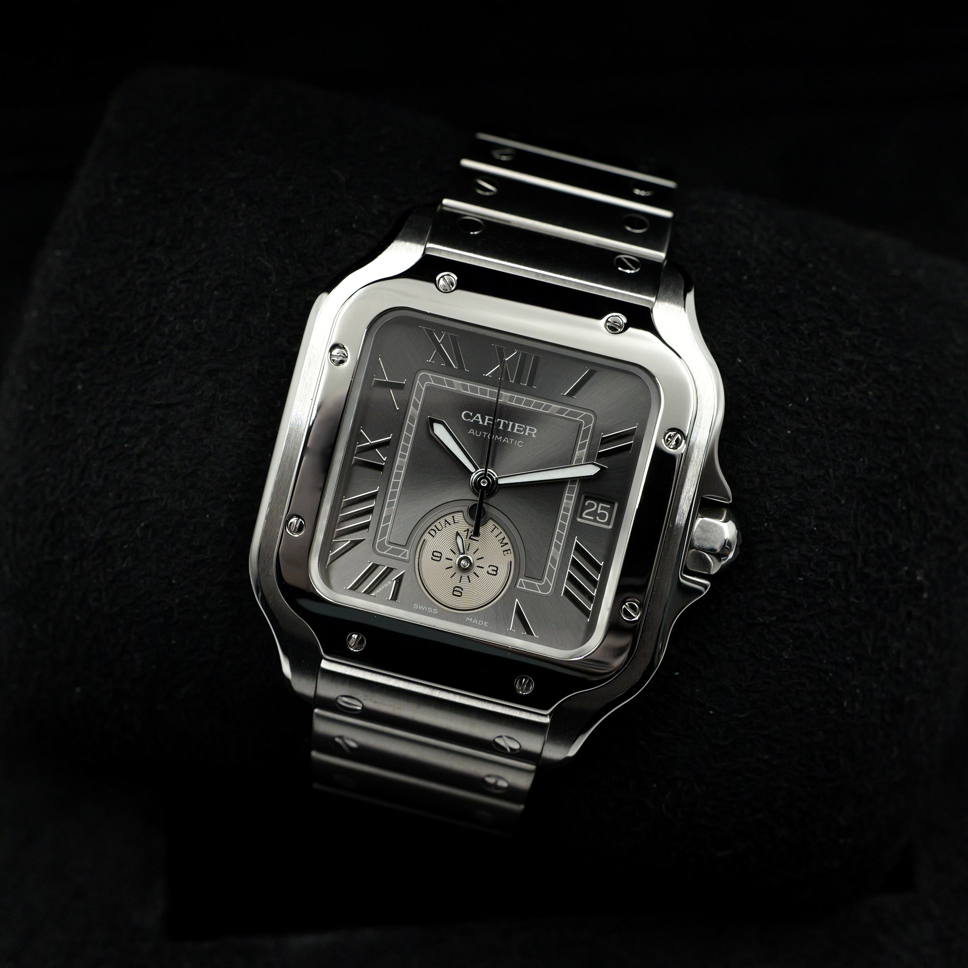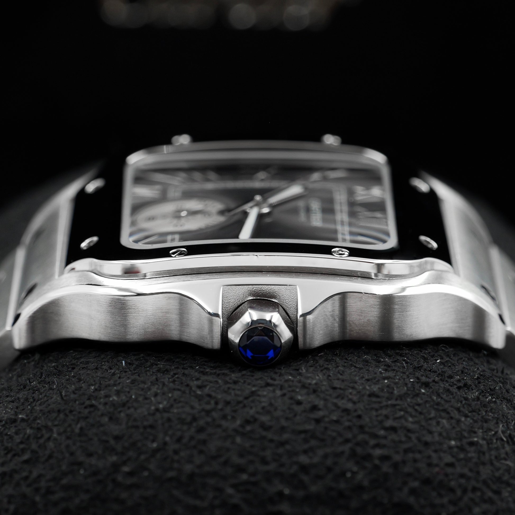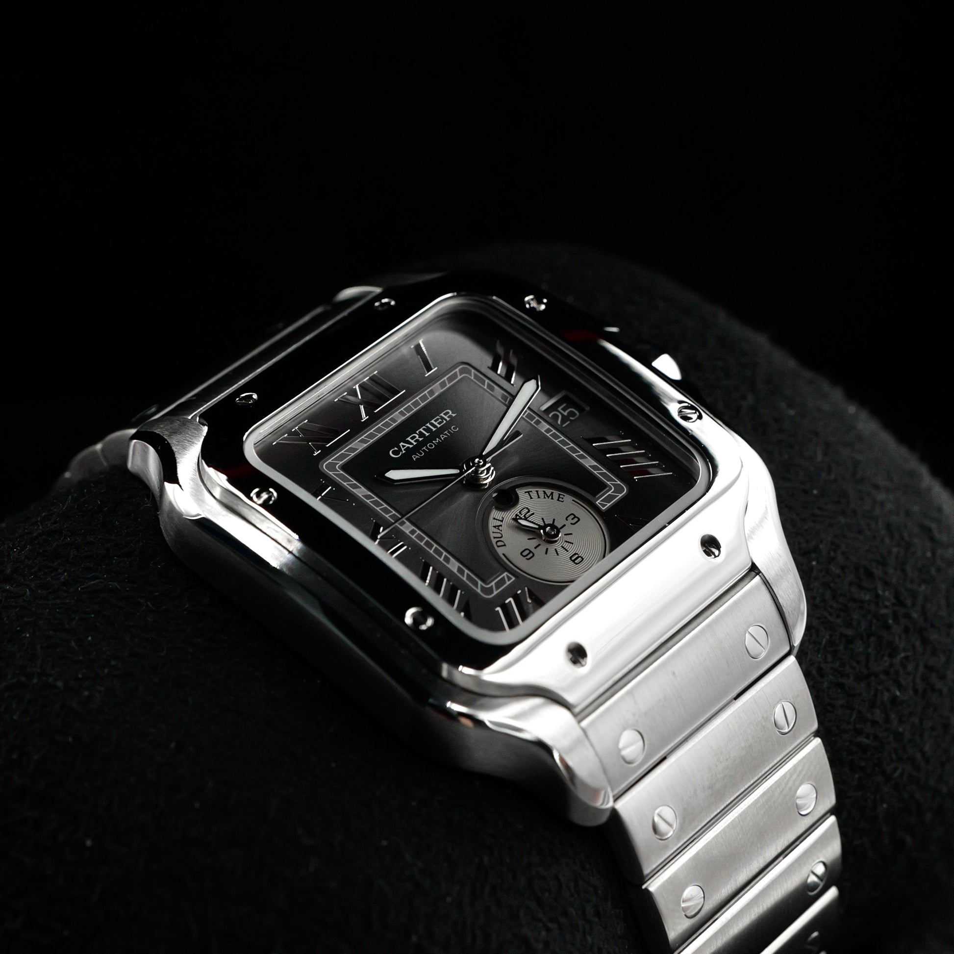 The Cartier Santos de Cartier Dual Time reference WSSA0076 reimagines one of the world’s most recognisable watch designs with a practical complication tailored for modern travel. Seamlessly blending heritage, elegance, and utility, this model preserves the timeless Santos aesthetic while introducing a second time zone for effortless international living.