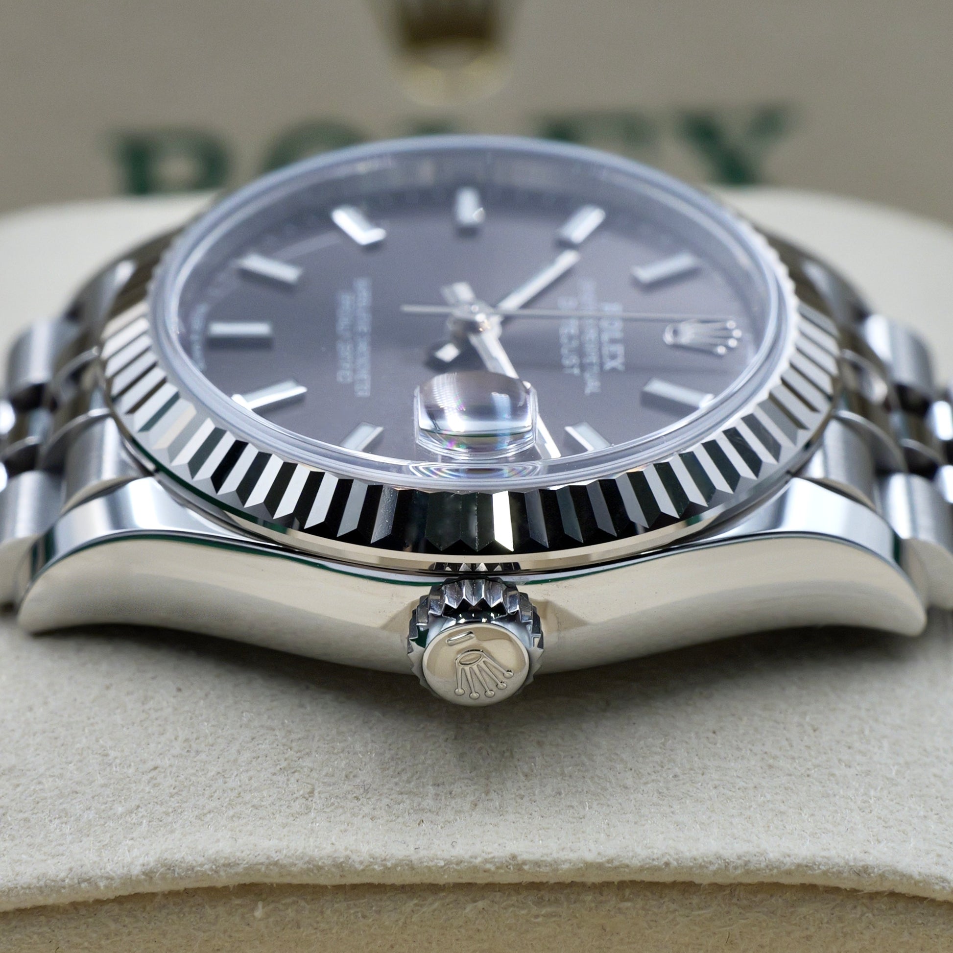 The Rolex Datejust 31 ref. 278274 in Oystersteel and white gold brings together timeless aesthetics and refined details in a compact 31mm case. Its fluted bezel in 18k white gold adds signature Rolex brilliance, framing a sophisticated rhodium sunburst dial adorned with classic baton hour markers for a clean, contemporary look. The dial’s rich texture shifts subtly with the light, adding depth and distinction.
