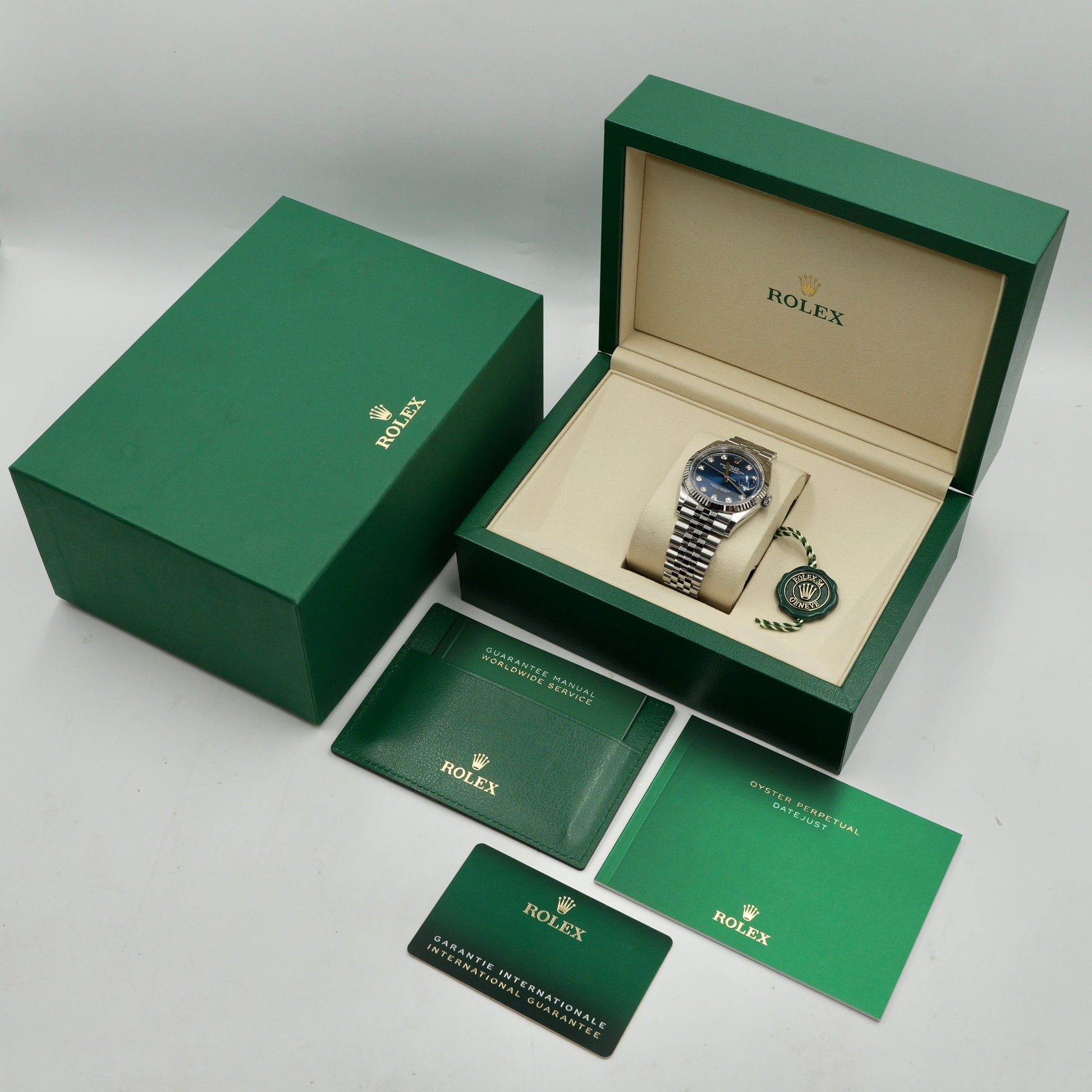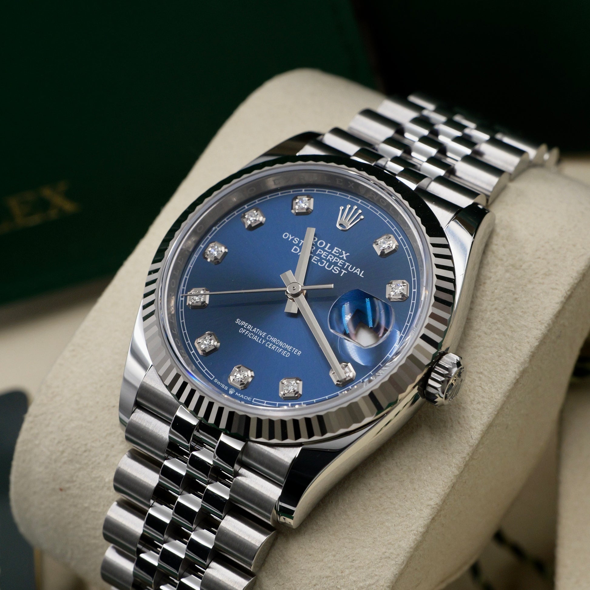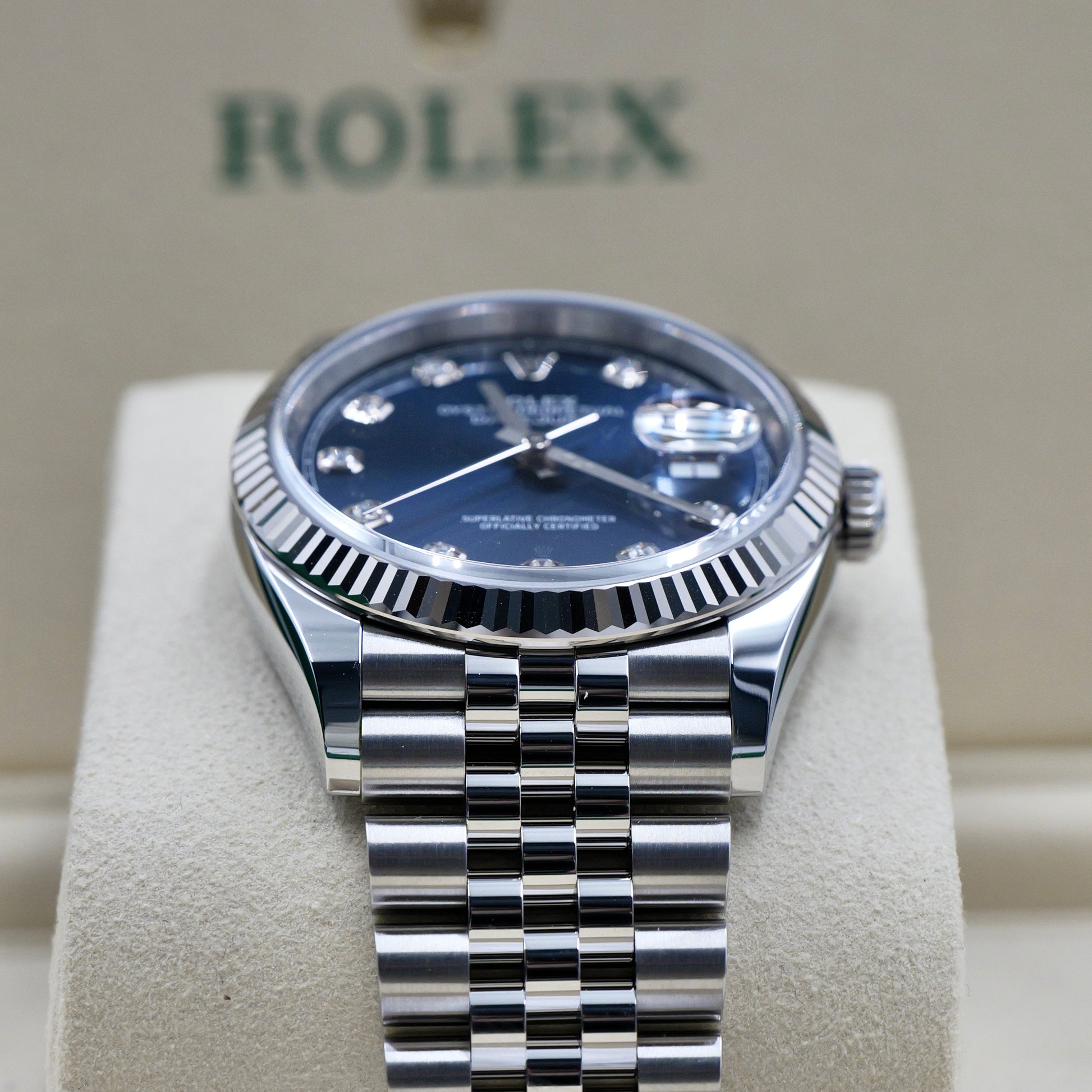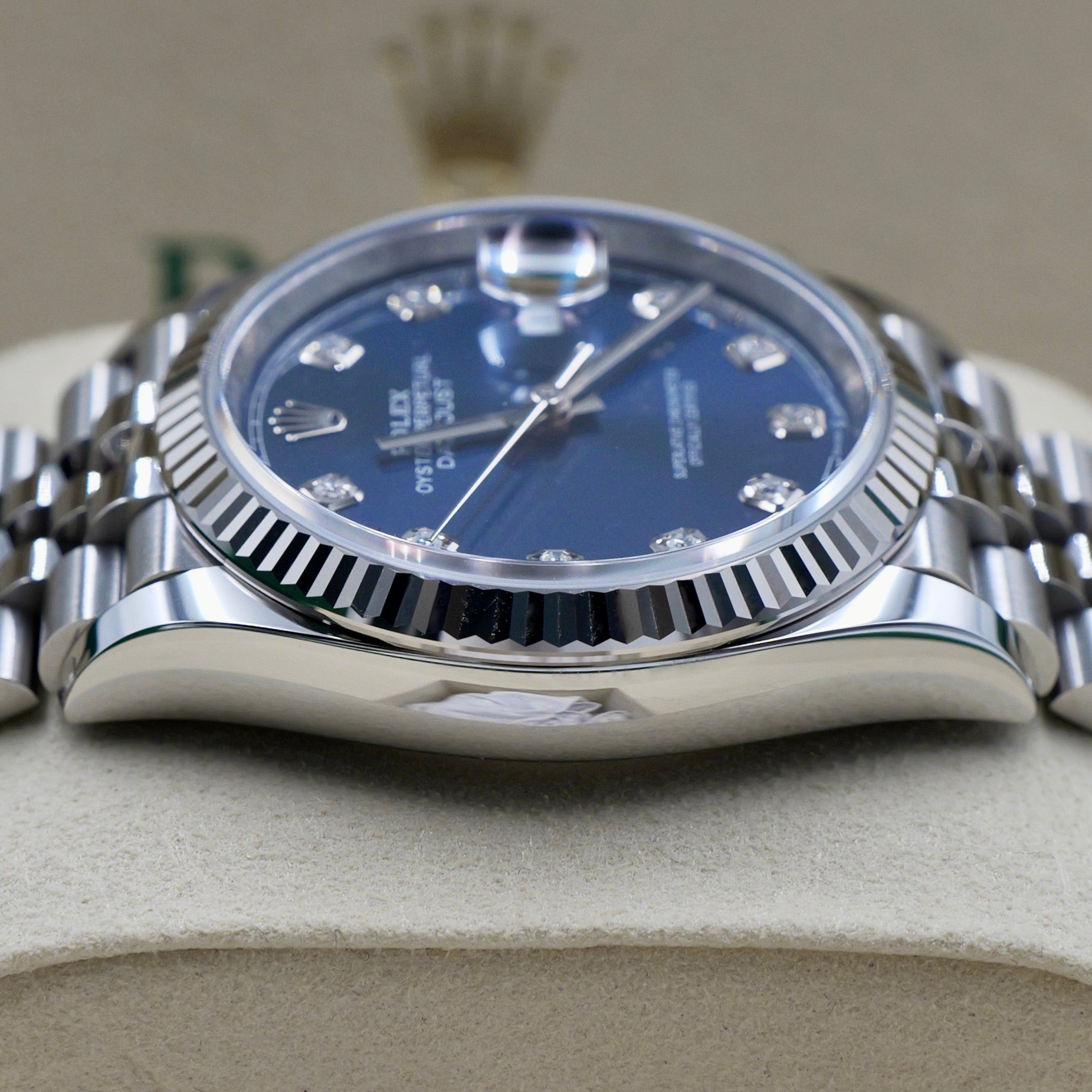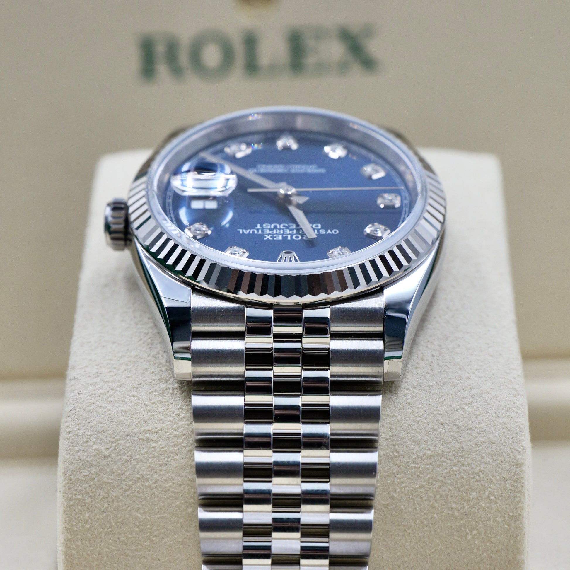 Rolex Datejust 36 Blue Diamond Dot Dial Fluted Jubilee 126234 - Full Set (2026)
