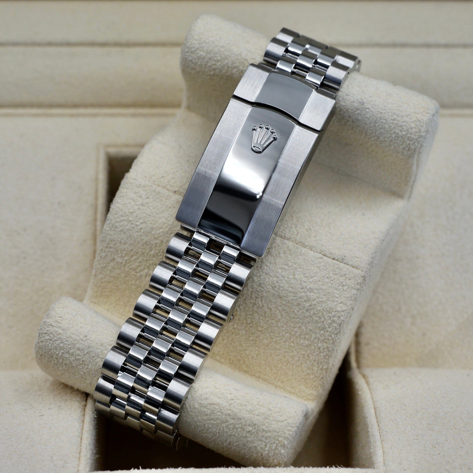 The Rolex Datejust 41 126300 in Oystersteel, featuring a classic blue dial, represents the purest expression of the Datejust lineage—refined, versatile, and resolutely contemporary. Its 41mm Oyster case, paired with a smooth polished bezel, offers a clean, confident silhouette built to withstand time.