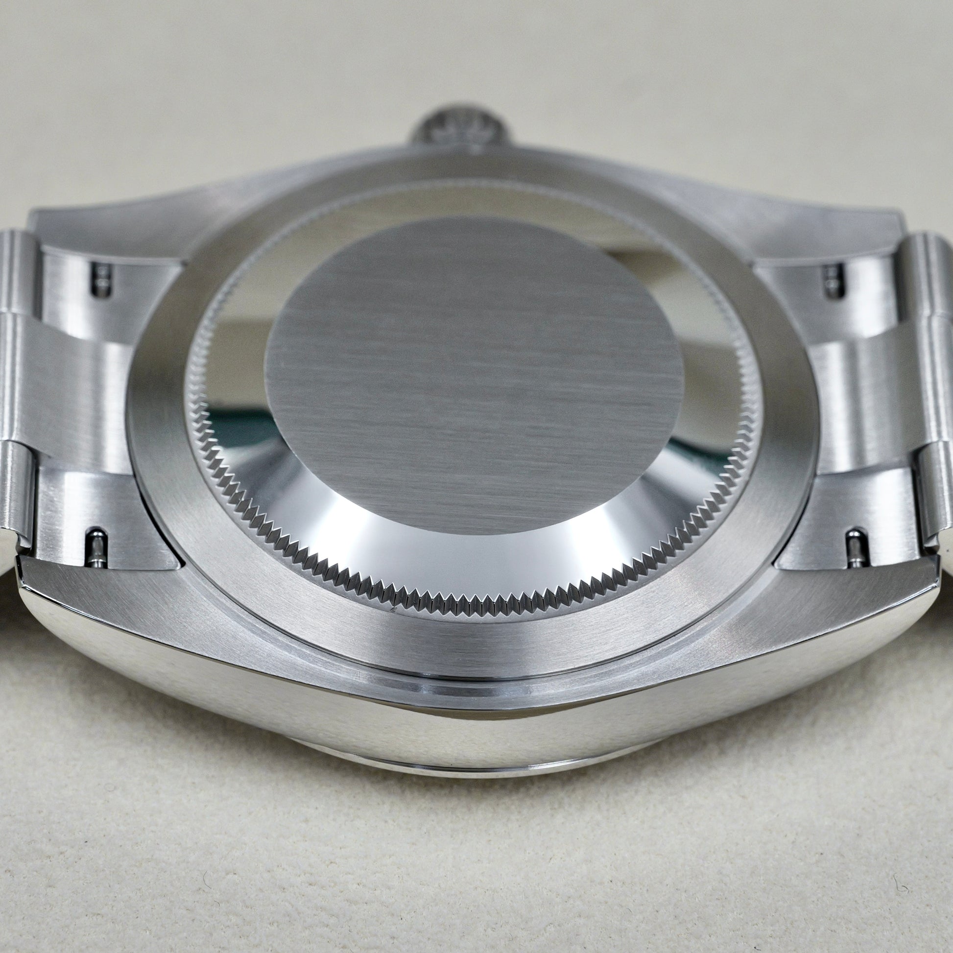 The cool-toned rhodium dial, enhanced by a sunray finish, is accented with white gold hour markers and the iconic Cyclops lens over the date window—subtle details that elevate everyday elegance. Understated yet distinctive, the 126300 is bold in execution, refined in design, and unmistakably Rolex.
