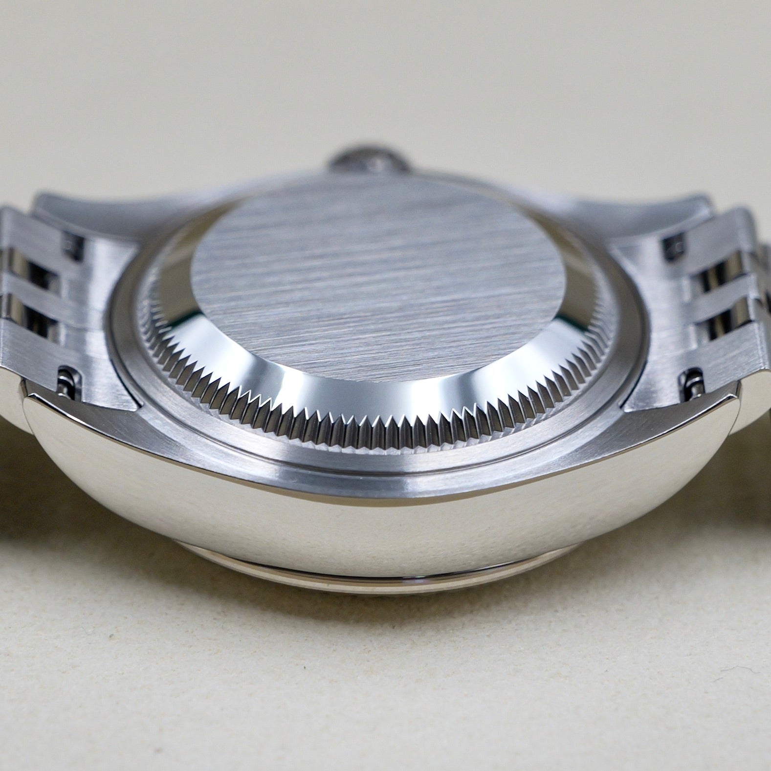 The Oyster case combines polished steel with the brilliance of a white-gold fluted bezel, reflecting light with unmistakable Rolex character. The sunray-finished rhodium dial offers a cool, contemporary tone that shifts beautifully under changing light. Brilliant-cut diamond hour markers, each set in 18 ct white gold, add refined sparkle while preserving a clean and elegant aesthetic. The date window at 3 o’clock magnified by the iconic Cyclops lens ensures everyday practicality without compromising symmetry.