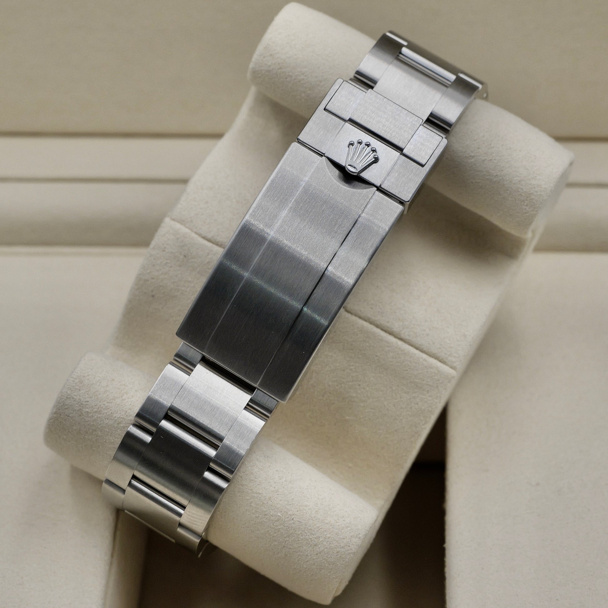 The black lacquer dial offers stark contrast to the green bezel, ensuring high legibility in any condition. Large Chromalight hour markers and Mercedes hands glow a striking blue in low light, while the Cyclops magnifier over the date at 3 o’clock reinforces both function and heritage. The 41mm Oyster case is waterproof to 300 meters and houses the advanced Calibre 3235, offering exceptional precision, shock resistance, and a 70-hour power reserve.